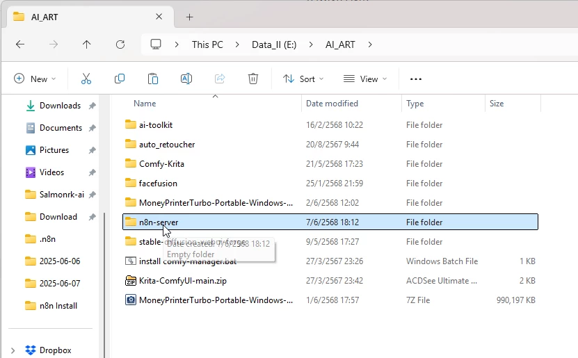 ขั้นตอนที่ 3: สร้างโฟลเดอร์สำหรับ n8n