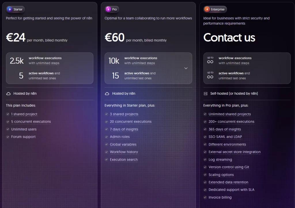 n8n มีทั้งแบบสมัคร รายเดือน เพื่อใช้งานบน Cloud Server (มีค่าใช้จ่าย ประมาณ 900 บาท/เดือน สำหรับ Starter package) n8n สามารถติดตั้งผ่าน Docker บนเครื่อง PC ของเราได้ ข้อดีคือ ควบควม Environment ได้ดีกว่า