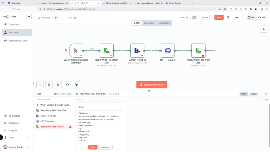 เราจพออกมาที่หน้า แรกสุดก็ได้ แล้วกด Execute Worflow ก็จะเป็นการสั่งให้ททำงานทั้งเวิร์คโฟลวเลย โดยไล่ทีละทำดับจาก ซ้ายไป ขวา