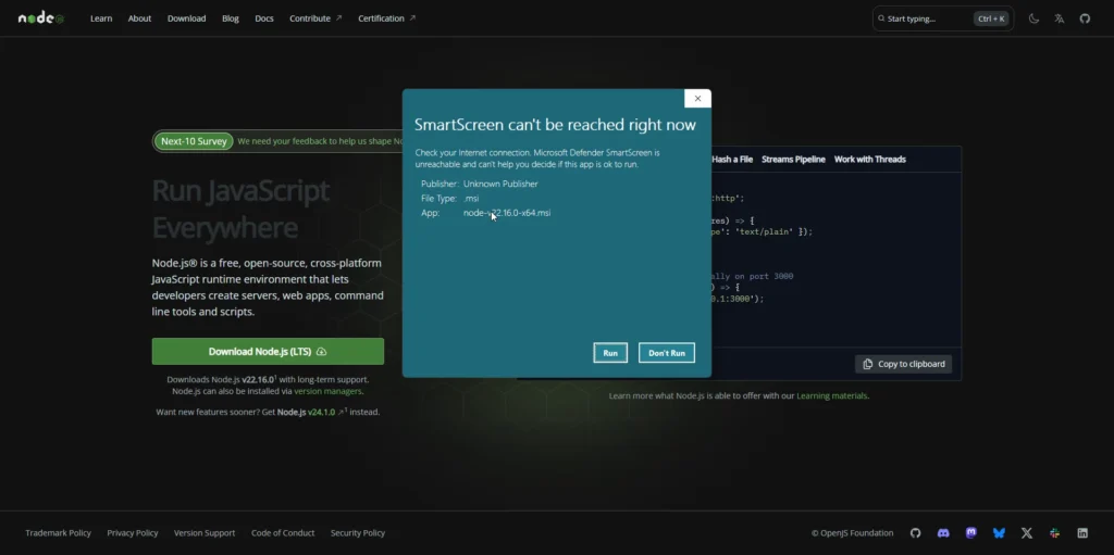 - คลิกปุ่ม “Download Node.js (LTS)” สีเขียว (แนะนำเวอร์ชัน LTS)
